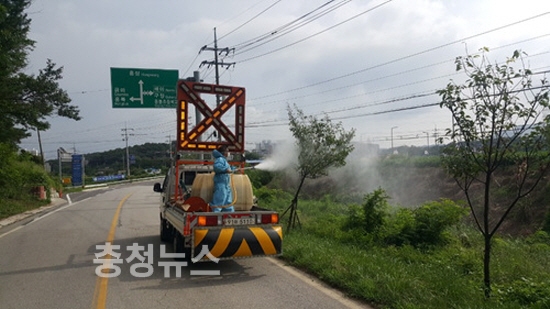 충남 홍성군은 미국흰불나방 등 산림병해충 발생에 따른 수목의 생장저하와 도시 미관 훼손을 방지하고자 각 읍․면 주요도로변 가로수에 긴급방제를 추진한다고 18일 밝혔다.