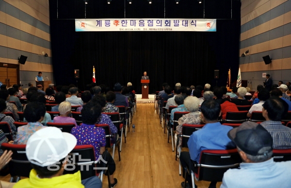 충남 계룡시(시장 최홍묵)는 지난 17일 계룡문화예술의전당 다목적홀에서 효 문화 확산을 위한 ‘계룡孝한마음협의회’ 발대식을 가졌다고 밝혔다.