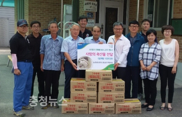 농협 충남지역본부(본부장 유찬형)는 19일 길정섭 부본부장이 올해 3월 명예이장으로 인연을 맺은 금산군 추부면 서대2리 마을을 찾아 ‘사랑의 축산물(삼계탕)’을 전달하고 마을 주민들을 보살피는 등 명예이장 활동을 활발히 펼쳤다.