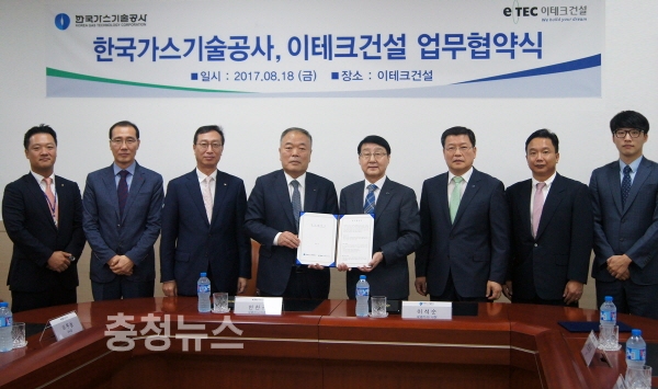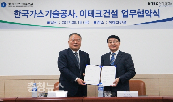 한국가스기술공사 이석순 사장은 지난 18일 이테크건설을 방문하여 신규 LNG 사업 협력을 위한 업무 협정서를 체결하고, 관련 사업에 대한 정보교류 및 향후 사업 수주에 긴밀한 업무 협력을 추진키로 했다.