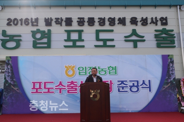 천안시는 23일 입장농협 포도 수출유통센터 준공식을 구본영 천안시장을 비롯한 농업분야 각계 인사 300여명이 참여한 가운데 개최했다.