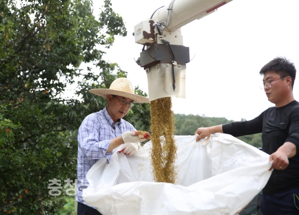 다시 이 시장은 발길을 돌려 서산지역에서 올해 첫 벼 베기가 시작된 부석면 지산리에 위치한 유병열(28)씨의 논을 찾았다.