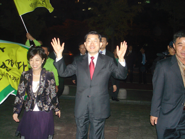 그는 노무현 대통령과 김대중 전 대통령의 지원을 받고 있다는 이명박 후보의 형 이상득 국회부의장의 주장에 대해 “전경련이 나서고 형님이 나서고, 참으로 대단하다. 하지만 음해를 그렇게 지위가 있는 사람이 해서는 안 된다. 그것은 사실 무근이며 그분들이 도와준다면 고마운 일이다”고 말했다.