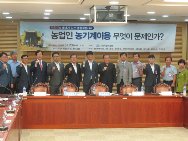 박완주 의원은 “농기계 임대사업의 발전을 위해서는 지역의 농작업 수요를 반영한 농기계 구입과 활용, 기종별 임대기간의 차별화 방안 마련 등 개선방안이 빠른 시일내 마련되어야 한다”며 “오늘 토론회에서 논의된 내용들이 실제 정책에 반영될 수 있도록 농해수위 위원으로서 최선의 노력을 다하겠다”고 말했다.