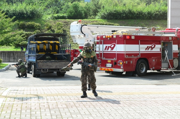 또한, 22일 실시된 을지연습 실제훈련은 홍주문화체육센터 피폭을 가정한 주민대피, 인명구조 및 긴급복구 등 실제와 같은 훈련 실시로 참관자로 하여금 높은 평가를 받았다.