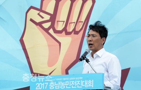 안 지사는 이날 축사에서 “우선 동학농민군의 후예인 농민 여러분들이 우리 먹거리와 생명을 지키는 농업과 농촌을 지켜가고 있는 것에 대해 존경과 감사의 인사 올린다”고 말했다.