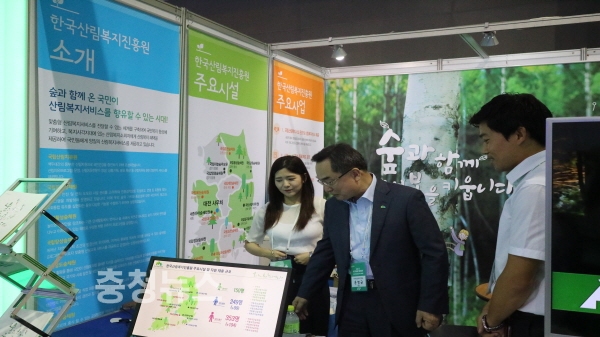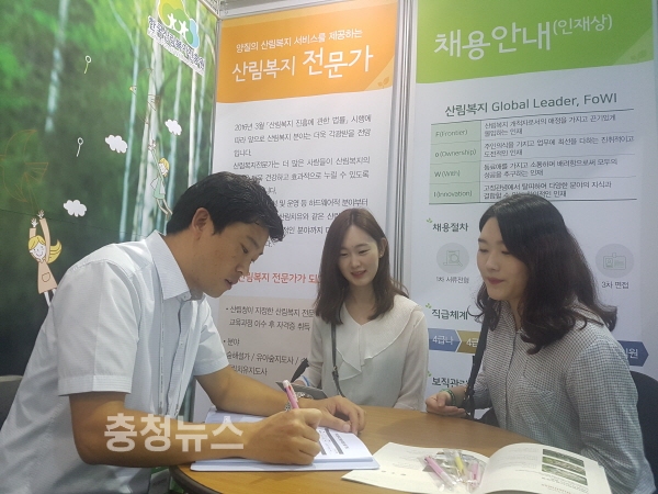 이날 김재현 산림청장과  윤영균 한국산림복지진흥원장은 진흥원 채용부스를 돌아보며 참가자들을 격려하였다.