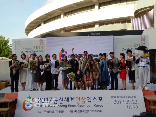 지난 25일 금산세계인삼엑스포조직위원회(위원장 이동필)는 대전 한화생명 이글스파크 일원에서 수천명의 야구 관람객이 지켜보는 가운데 '2017금산세계인삼엑스포'성공기원 D-30 기념행사를 성황리에 마쳤다.