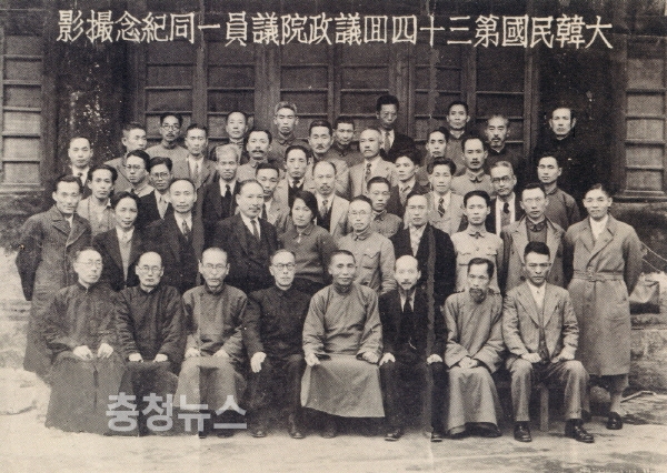 대한민국 임시의정원 제34회 의원 기념사진(네번째줄 왼쪽 두 번 째 고운기)_1942. 10. 25.