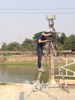 계측기를 통해 물의 수량, 유속을 확인( 태국 쁘란부리)