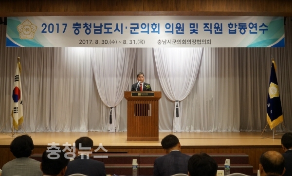 충남시군의회 의장협의회(회장 이기성, 청양군의회 의장)에서 주관으로 ‘2017년 충남시군의회 의원 및 직원 의정연수’가 8월 30일과 31일 이틀에 걸쳐 충남 태안군 리솜오션캐슬에서 개최됐다.