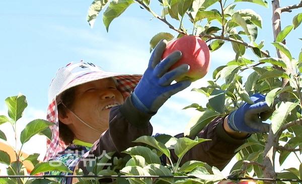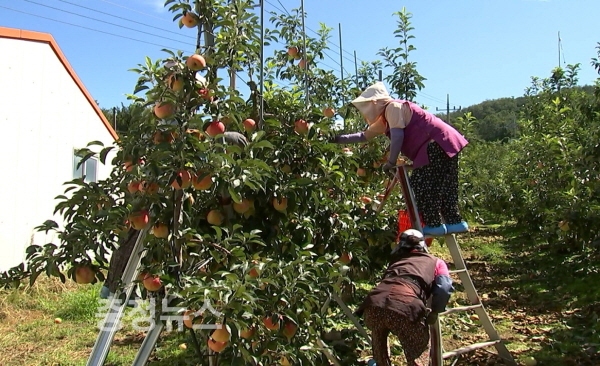 1일 군에 따르면 이번에 첫 수확되는 사과는 홍로 품종으로 홍로사과는 상온에서 30일 정도 저장이 가능해 추석 차례상에 오르는 대표적인 햇과일로 추석 명절을 전후해 가장 많이 소비되고 있다.