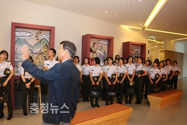 장시성 대전효문화진흥원장은 인사말에서 “오늘 방문한 생도들은 효와 충을 실천하고 있는 모범생인데 찾아주셔서 감사하다. 오늘 대전효문화진흥원 방문을 계기로 부모님의 은혜를 다시 한 번 생각할 수 있는 시간이 되었으면 하고, 앞으로도 효와 충을 통해 이 시대의 리더로 성장하시기 바란다.”라고 말했다.