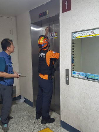 현장에 출동한 구조대원들은 이씨의 안전을 확인한 후, 승강기가 갑작스럽게 움직이지 않도록 승강기 전원 차단을 실시하고 신속하게 마스터키를 이용해 문을 개방, 갇혀있던 이씨를 안전하게 구조했다.