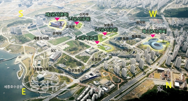 행복청(청장 이원재)은 정부세종청사 인근 4개 부지에 지하주차장을 건립하는 복합편의시설 제1공사(이하 복합주차시설)의 시공사로 ㈜동우개발 컨소시엄이 선정됐다고 3일 밝혔다.