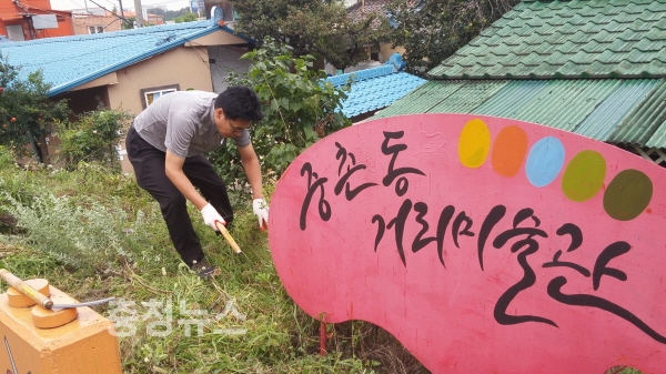 대전 중구 중촌동 행정복지센터(동장 김주현)는 지난 1일 자생단체 회원 등 100여 명이 참여한 가운데 ‘중촌동 거리미술관’에 조성된 화단의 잡초를 말끔히 정비했다.