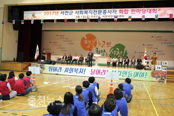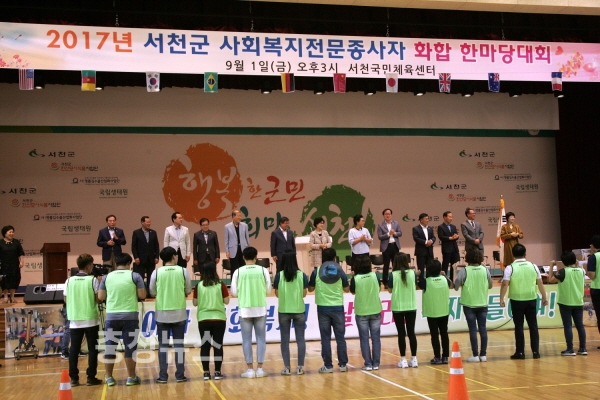 충남 서천군(군수 노박래)은 지난 1일 서천국민체육센터에서 사회복지시설 종사자 120여 명이 참석한 가운데 ‘2017 사회복지종사자 화합 한마당대회’를 개최했다.