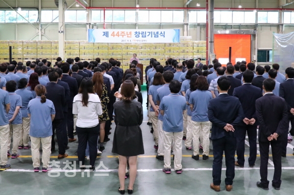 산소소주 O2린(오투린)을 생산하는 충청권 주류 대표기업 맥키스 컴퍼니(옛 선양 / 회장 조웅래)는 4일 오동 공장에서 임직원 200여명이 참석한 가운데 창립 44주년 기념식을 가졌다.