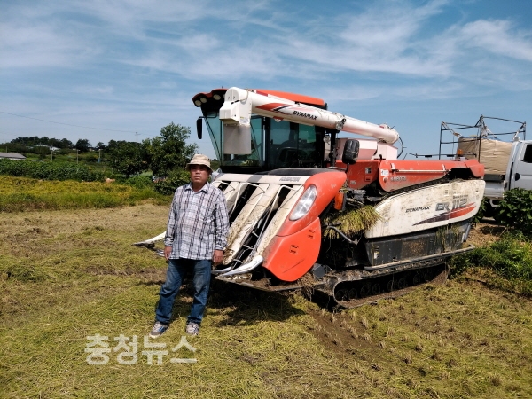 충남 아산시 둔포면 산전리 이대희 (58세, 둔포면 이장협의회장)농가에서 지난 4일 관내에서 첫 벼 베기를 실시했다.