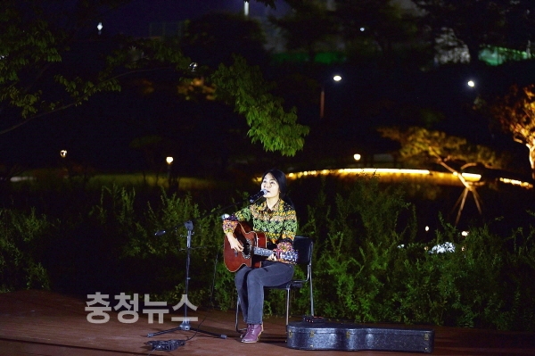 충남 논산시민공원에서 열리는 숲속버스킹이 성큼 다가온 논산의 가을을 촉촉이 적시고 있다.