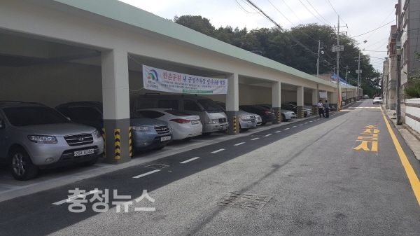 한촌어린이공원에 완공된 공영주차장 모습