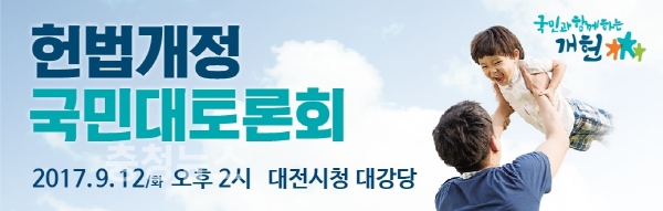 국회헌법개정특별위원회(위원장 이주영)와 충청권 헌법개정 국민대토론회가 오는 12일 오후 2시에 대전시청 3층 대강당에서 개최된다.