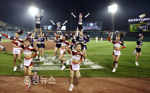 한편, 한화갤러리아타임월드 “희망 트레이너-꿈꾸는 날갯짓”과 한화종합연구소 “대전 아동 Cheer-up"프로그램에 참가하는 치어리딩 동아리 2개 팀은 오는 10월에도 한화갤러리아타임월드와 세종호수공원에서 연합 치어리딩 공연을 한화이글스 치어리더들과 함께 선보일 예정이다.