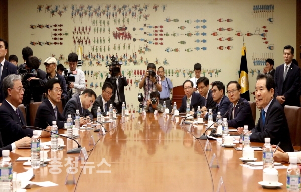 정 의장은 오전 11시 국회접견실에서 정기국회 개회를 맞아 “정기국회에서 가장 중요한 안건은 내년도 예산안 심사”라면서 “내년 예산안도 법정기한 내에 여야가 합의처리해주길 바란다”고 말했다.
