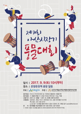 충남 아산시가 주최하고 한국예총 아산지회(회장 이기은)가 주관하는‘제10회 아산시장기 풍물대회’가 오는 9일 온양온천역 광장 일원에서 펼쳐진다.