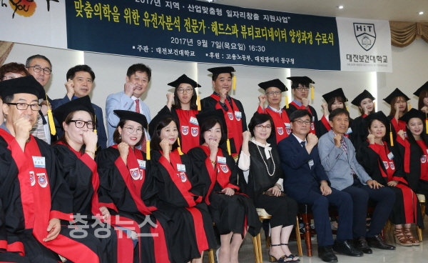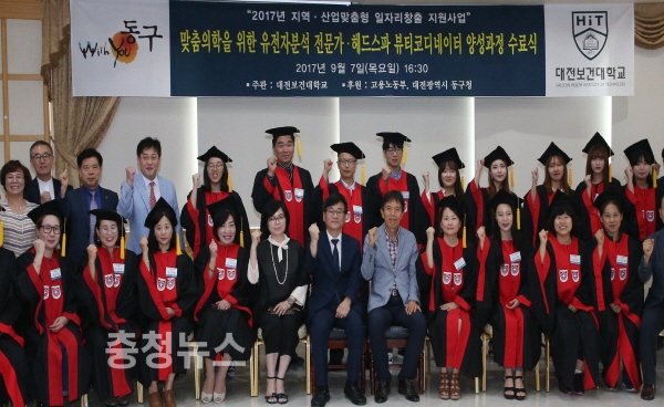 대전 동구(구청장 한현택)는 7일 대전보건대학교에서 35명의 교육생이 참석한 가운데 지역산업맞춤형 일자리창출 지원사업인 유전자분석 전문가과정과 헤드스파 뷰티코디네이터 양성과정에 대한 수료식을 가졌다.