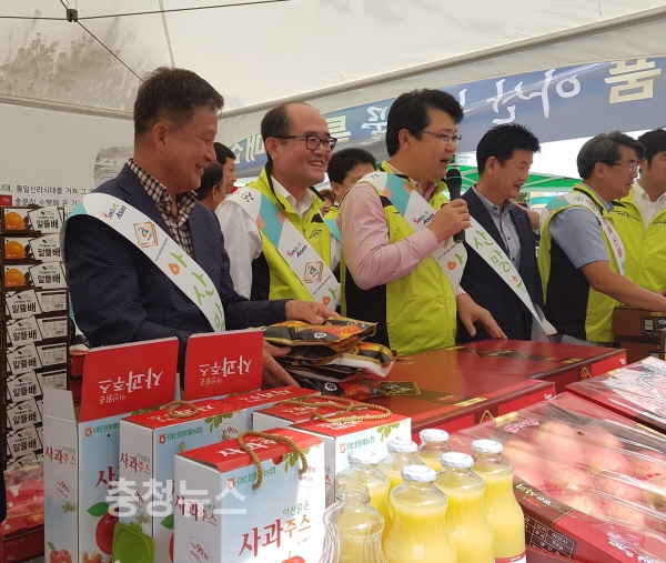 농협 충남지역본부(본부장 유찬형)는 아산시(시장 복기왕)와 함께 8일 충남농협 직거래 금요장터內(대전 대사동)에서 지역에서 생산된 우수농산물을 홍보·판촉하는 ‘아산시의 날’을 준비하여 ‘아산맑은’ 농·특산물에 대한 홍보· 판촉행사를 펼쳤다.