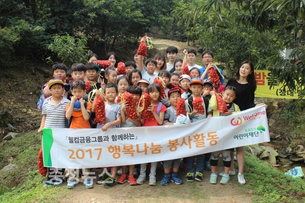 이 날 알밤 줍기 체험은 가을 숲 속 자연의 신비로움과 변화를 직접 체험하며 아이들의 오감과 감성을 자극하는 체험 교육의 일환으로 웰컴금융그룹의 후원과 임직원들의 봉사활동으로 이뤄졌다.