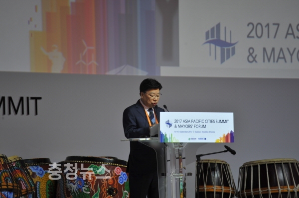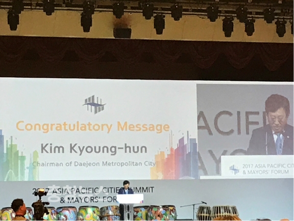 권선택 대전시장은 개회사에서 “큰 국제행사가 과학도시 대전에서 열려 기쁘다"며 “정보를 교류하고 소통해 아시아. 태평양 지역 도시의 현재와 미래를 위한 지혜를 모으기 바란다”고 아태도시정상회의의 성공적 개최를 축하했다.