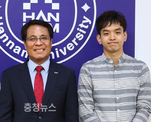 왼쪽부터 이덕훈 한남대 총장과 전재영 학생