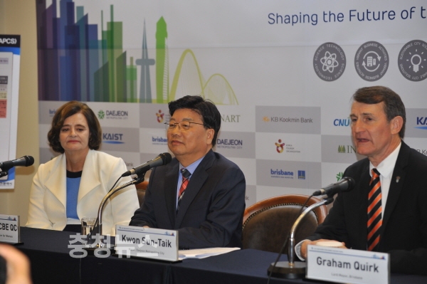 권선택 대전시장은 이날 기자회견에서 "93년 대전엑스포 이후 23년만에 크게 국제행사 치르는데 아직까지 큰 문제없이 진행되고 있다"며, "이번 아태도시정상회의를 통해 글로벌 브랜드로서의 대전을 세계에 알리겠다"고 말했다.