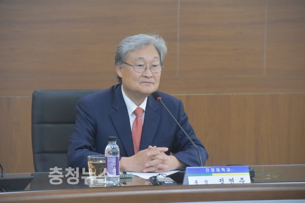 정 신임 총장은 이날 오전 건양대 대전 메디컬캠퍼스 축헌정보관에서 기자간담회를 열고 앞으로의 다짐과 청사진을 밝혔다.