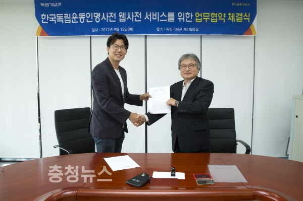 독립기념관(관장 윤주경)은 12일 독립운동사 연구를 집대성한 ‘한국독립운동 인명사전’을 국민들에게 널리 보급하고 홍보하기 위해 인터넷 포털 카카오와 업무협약(MOU)를 체결한다.