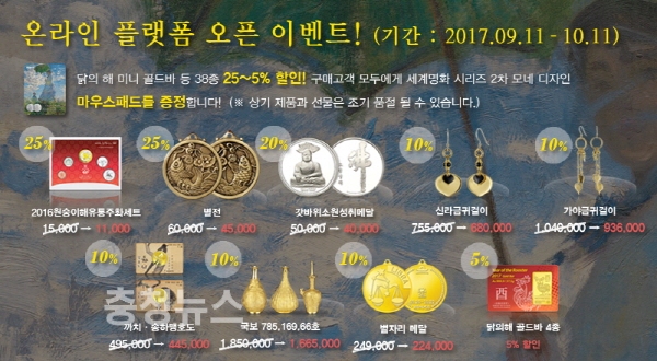 조폐공사는 쇼핑물 개편에 맞춰 ‘닭의 해 미니 골드바’ 등 38종 제품을 최대 25% 할인 판매하고, 구매 고객에게 기념품을 증정하는 등 사이트 새단장 오픈 이벤트도 진행중이다.