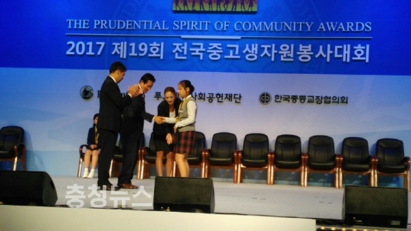 보령 청라중 권미리, 제19회 전국중고생 자원봉사대회 “금상”