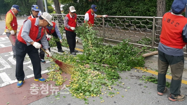 대전 중구 태평2동(동장 최상훈)은 13일 가을철 클린사업 일환으로 은행나무 가로수의 전지작업과 열매따기를 집중 실시한다고 밝혔다.