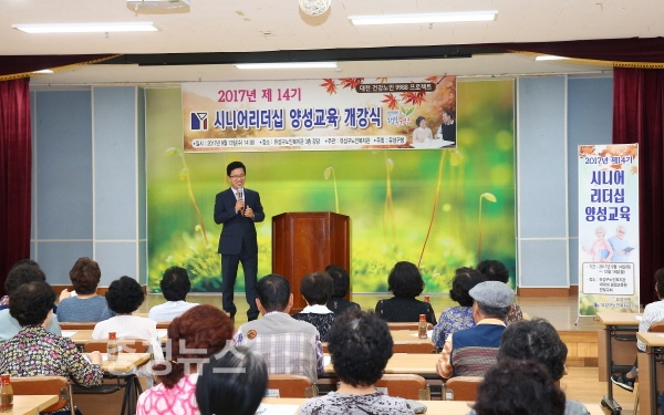 대전 유성구(구청장 허태정)는 13일 유성구노인복지관 강당에서 ‘2017년 제14기 시니어리더십 양성교육 개강식’을 가졌다.