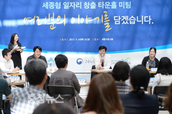 세종시(시장 이춘희)는 14일 세종시청 4층 중정에서 ‘일자리창출 아이디어 타운홀 미팅’을 개최했다.