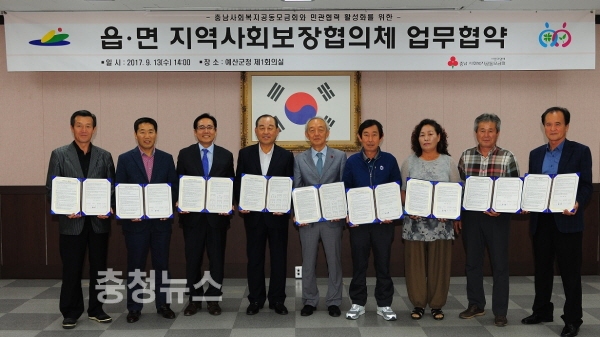 또한 읍·면 지역사회보장협의체는 지역 내 복지사각지대 발굴 및 복지자원 개발 연계 활동을 주도적으로 추진하고 충남사회복지공동모금회는 기부 금품의 모금·접수·배분을 관리하기로 했다.
