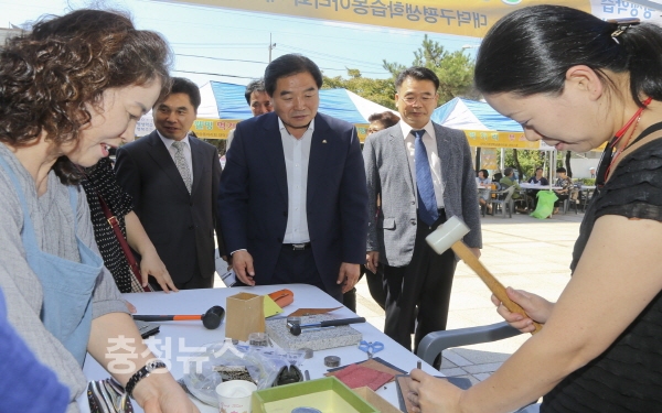 센터 1층 앞마당에서도 가죽 키홀더 만들기, 미니 캔버스 만들기, 리본 공예, 티라미슈 컵케익 만들기, 심폐소생술 시연․안전교육 등 다양한 체험부스가 열렸으며 동아리들이 직접 운영하는 웰빙․전통 먹거리 부스도 함께 진행돼 ‘행복주간’을 찾은 동아리와 주민들에게 풍성한 볼거리와 먹을거리를 제공했다.