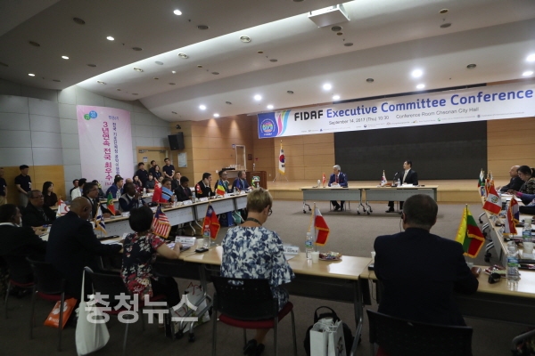 세계 각국의 춤축제의 상호 협력체제 구축으로 발전방안을 모색하기 위해 출범한 국제춤축제연맹(FIDAF :Federation of International Dance Festivals) 집행위원회 회의가 14일 천안시청 대회의실에서 개최됐다.