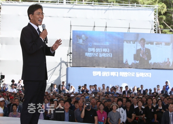 안 지사는 “10년 전 이 앞바다를 시커멓게 매운 기름을 우리의 두 손으로 닦아내고 걷어냈다. 그것은 전 세계 사람들이 놀란 기적이었다”며 “충남도지사로서 이 기적을 일궈낸 자원봉사자와 국민 모든 분들께 ‘감사합니다’, ‘고맙습니다’는 말씀을 꼭 드리고 싶다”고 말했다.