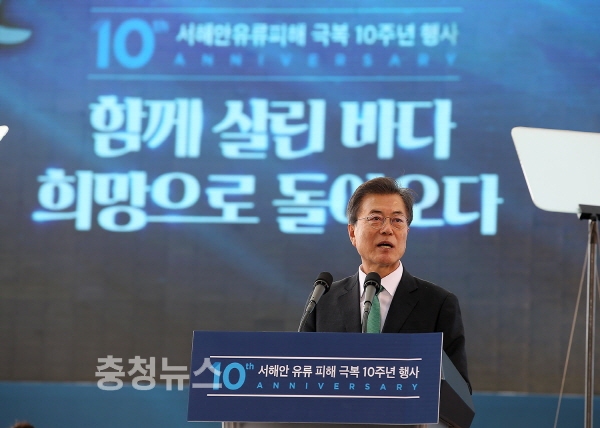 문재인 대통령은 깨끗한 바다를 지키기 위한 안전·재난 관리에 더욱 힘쓰겠다고 강조하고 충남도의 노후 석탄화력발전소 폐쇄 및 미세먼지 감축 제안에 힘을 보탤 것을 약속했다.