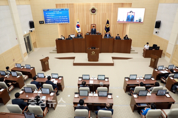 ‘행정수도 완성을 위한 개헌 특별위원회 구성 결의안, 공공시설물 인수점검 특별위원회 구성 결의안, 예결위 위원 선임의 건, 세종-공주 시티투어 운영 민간위탁 동의안, 충청산업문화철도 행정협의회 규약(안) 등 총 48건의 부의안건을 처리했다.