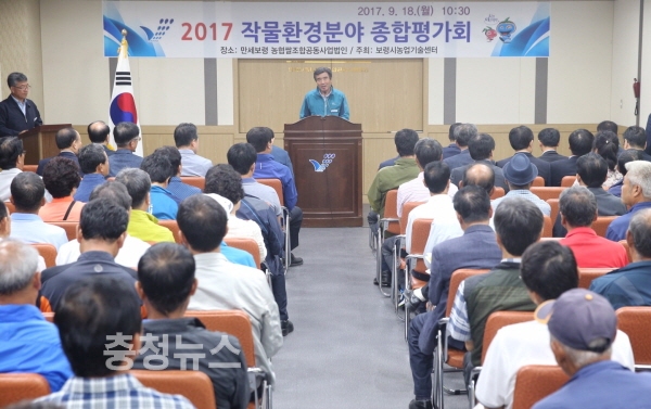 충남 보령시는 18일 남포면 양항리 통합RPC 및 보령창조농업시범단지에서 김동일 시장과 농업관련 기관·단체 관계자, 농업인 등 300여 명이 참석한 가운데 2017년 작물환경분야 종합평가회를 개최했다.