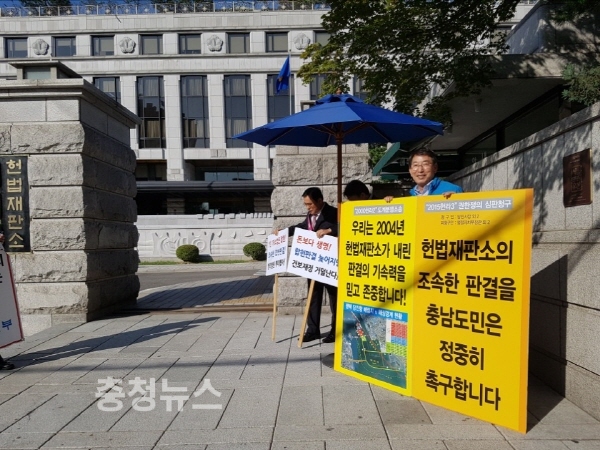 이종윤 당진시의회 의장, 당진땅 수호 헌법재판소 앞 1인 피켓시위 / 충청뉴스 최형순 기자